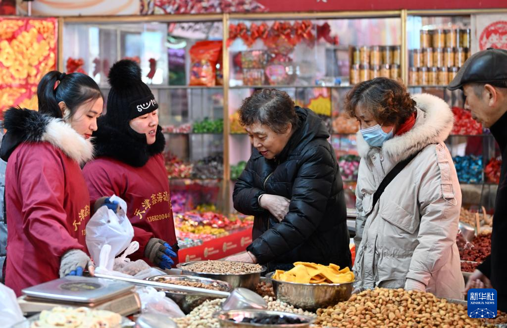新春佳節(jié)臨近,在天津韓家墅海吉星農(nóng)產(chǎn)品批發(fā)市場舉辦的2024年天津市北辰區(qū)新春年貨節(jié)上,消費(fèi)者來來往往,熱鬧非凡。