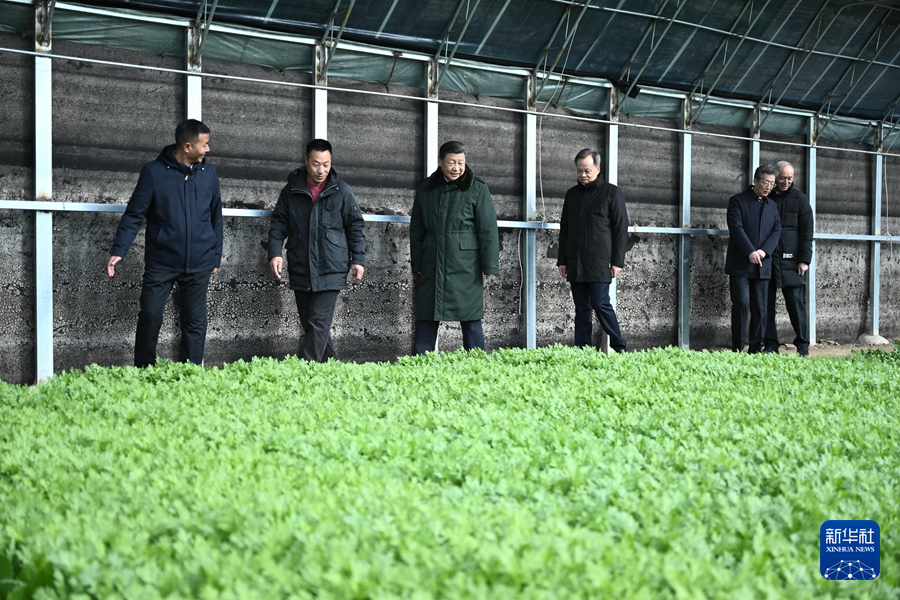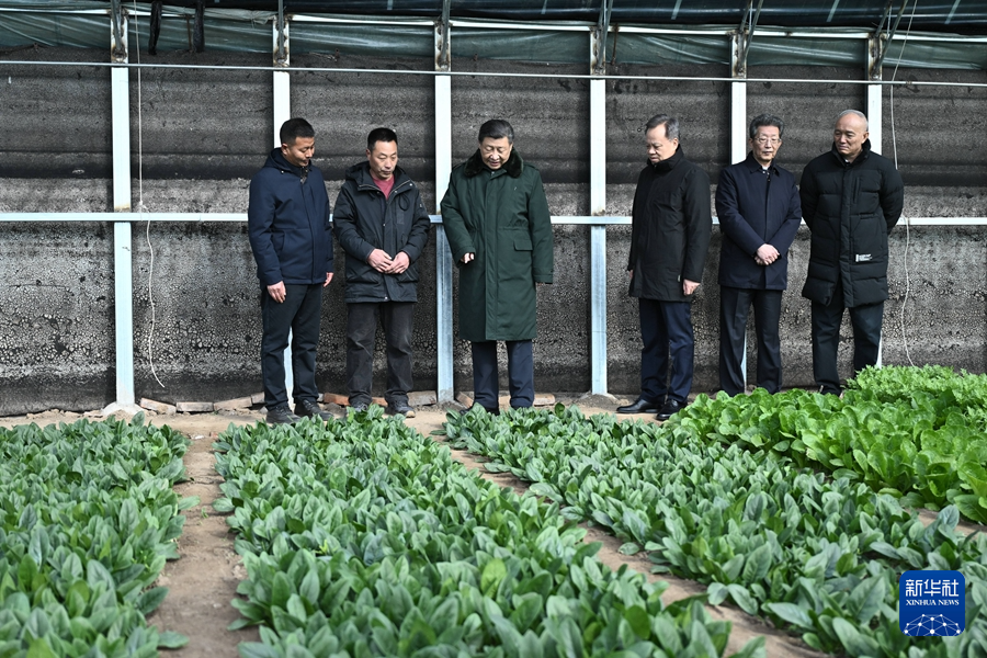 2月1日至2日,中共中央總書記、國家主席、中央軍委主席習(xí)近平來到天津,看望慰問基層干部群眾。這是1日上午,習(xí)近平在西青區(qū)辛口鎮(zhèn)第六埠村實(shí)地察看去年洪澇災(zāi)害后當(dāng)?shù)剞r(nóng)業(yè)生產(chǎn)恢復(fù)等情況時(shí),走進(jìn)大棚看蔬菜長勢。新華社記者 燕雁 攝