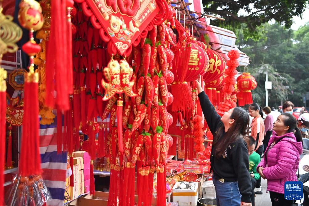 隨著春節(jié)臨近,廣西南寧迎來春節(jié)飾品銷售旺季,眾多市民采購(gòu)春聯(lián)、窗花等,喜迎新春。