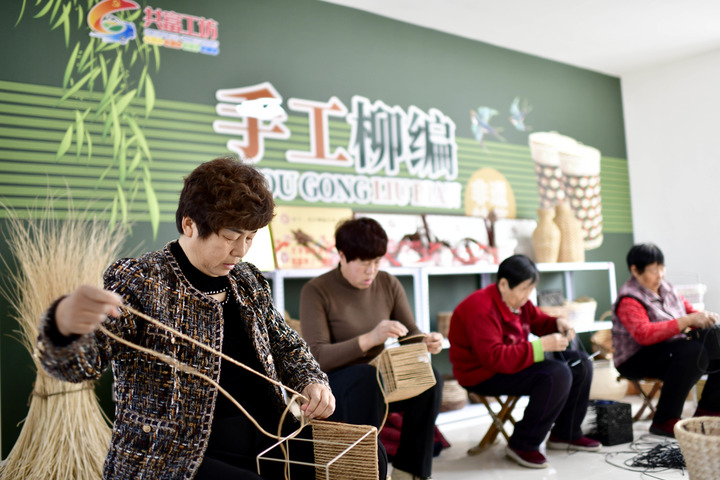 在東營(yíng)市東營(yíng)區(qū)龍居鎮(zhèn)“共富工坊”,村民加工柳編產(chǎn)品。新華社記者郭緒雷 攝