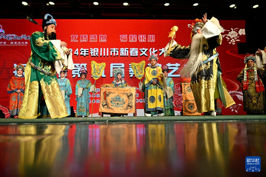 當日,“龍騰盛世 福耀銀川”2024年銀川市新春文化大集系列活動——“梅花秦韻·綻放湖城”銀川市第九屆秦腔藝術(shù)節(jié)在銀川市秦腔傳承保護基地劇場開幕。藝術(shù)節(jié)期間將有來自陜西、甘肅、青海、寧夏等地的秦腔院團、中國戲劇梅花獎演員參與交流演出,帶來《周仁回府》《大升官》《金麒麟》《雙官誥》等經(jīng)典傳統(tǒng)劇目,讓戲迷們在家門口看大戲、過大年。