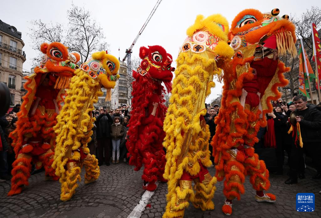 法國(guó)華人社區(qū)4日在巴黎香榭麗舍大街主辦舞龍舞獅等表演活動(dòng),慶祝即將到來(lái)的龍年春節(jié)。
