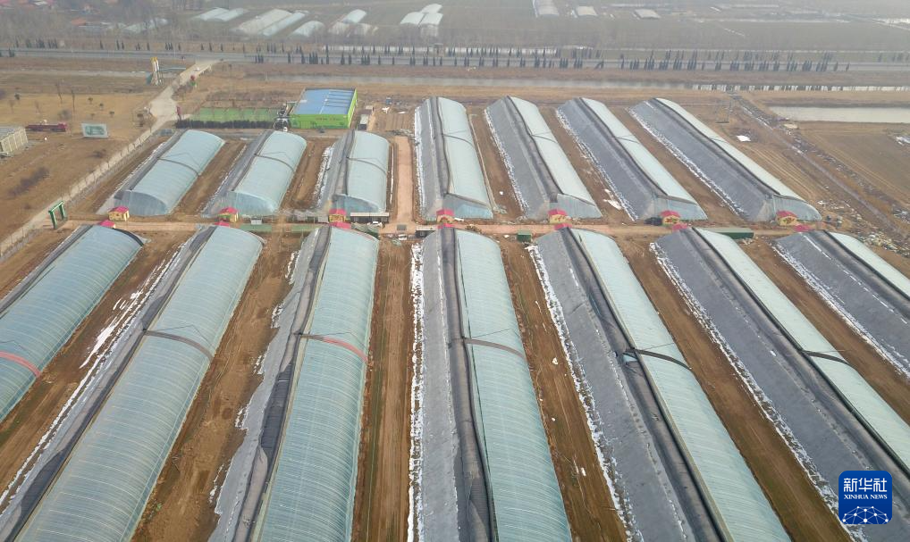 2月6日拍攝的位于山東省臨邑縣臨南鎮(zhèn)的蔬菜大棚(無(wú)人機(jī)照片)。