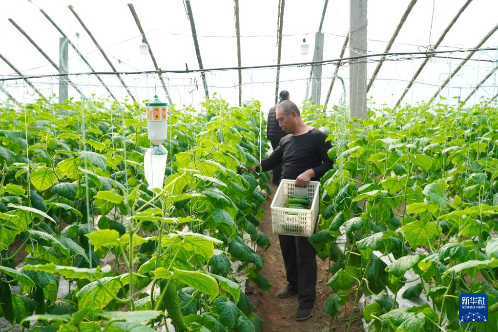 春節(jié)臨近,山東省臨邑縣的蔬菜大棚種植戶忙著進(jìn)行田間管理,收獲新鮮蔬菜供應(yīng)市場。臨邑縣蔬菜種植面積10萬余畝,主要包括西紅柿、西葫蘆、黃瓜、生菜等品種,銷往北京、天津、山東、河北等省市。