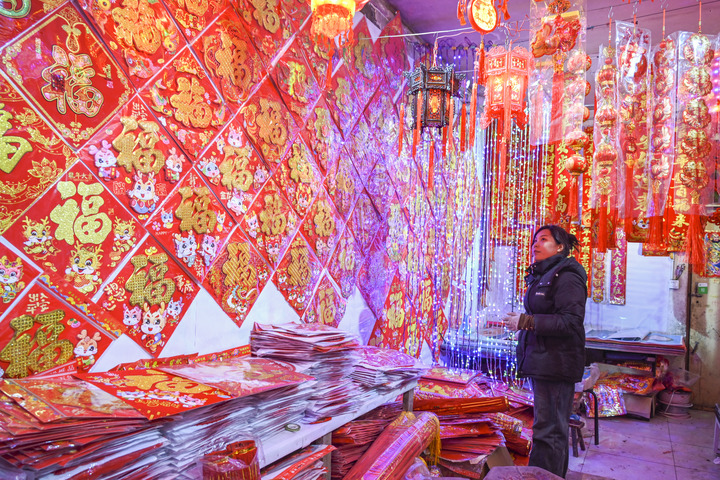 1月21日,在山西省晉中市平遙縣一家市場(chǎng),市民在選購(gòu)年貨。新華社發(fā)(梁生仁攝)