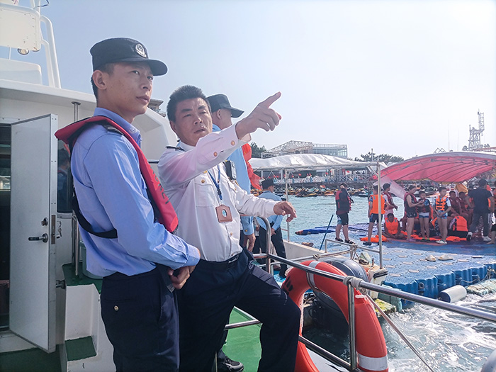 “2023年5月,我們依托‘紅帆’平臺,聯合各管海部門成立三亞海上游艇經營活動監(jiān)管黨建聯盟。今年春節(jié)期間,我們通過黨建聯盟合作平臺進一步加強游艇管理,將黨建引領融入港船岸線管控工作全過程、全領域,逐步形成黨務與業(yè)務深度融合發(fā)展的新格局?!痹撍撠煷芄ぷ鞯奶K朝潤副所長介紹說。