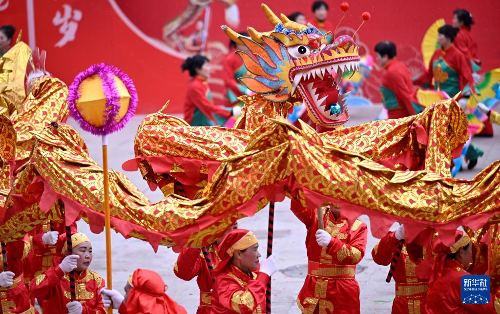 當(dāng)日,寧夏銀川市社火聯(lián)賽首場比賽在興慶區(qū)光明廣場舉行。來自銀川市興慶區(qū)、賀蘭縣的多支社火隊(duì)為市民獻(xiàn)上秧歌、舞龍、舞獅等傳統(tǒng)社火項(xiàng)目,喜迎元宵佳節(jié)的到來。