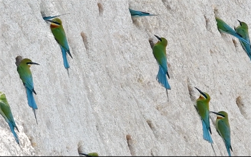 栗喉蜂虎,國(guó)家二級(jí)保護(hù)動(dòng)物,被稱為中國(guó)最美麗的鳥(niǎo)類之一。作為夏候鳥(niǎo),每年4月份左右,栗喉蜂虎會(huì)“組團(tuán)”來(lái)到廈門(mén)五緣灣栗喉蜂虎市級(jí)自然保護(hù)區(qū)筑巢繁衍。