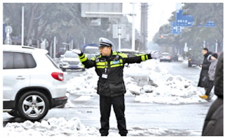 從早上7點至晚上11點,忙碌在風(fēng)雪保暢的交通管理一線,他嘶啞的嗓音、疲憊的眼神、有力的手勢、奔跑的腳步、溫暖的交談……