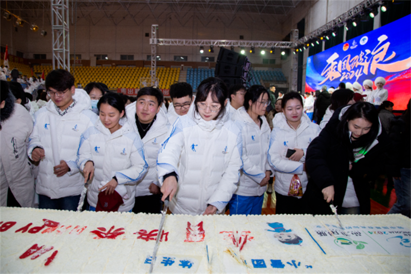 為即將到來的新年和冬運增添一份歡樂和喜慶的氛圍,呼倫貝爾學(xué)院精心策劃“迎新春生日會”活動。這種特殊的慶祝方式不僅能讓小雪團們感受到冬運的激情與活力,也能夠體驗到生日會的溫馨與喜悅?!皩τ诖蠖鄶?shù)志愿者來說,這是他們第一個不在家鄉(xiāng)過的春節(jié),雖不能與家人團聚,但可以在學(xué)校這個‘大家庭’度過一個特殊的‘十四冬’年。”呼倫貝爾學(xué)院負(fù)責(zé)老師說。
