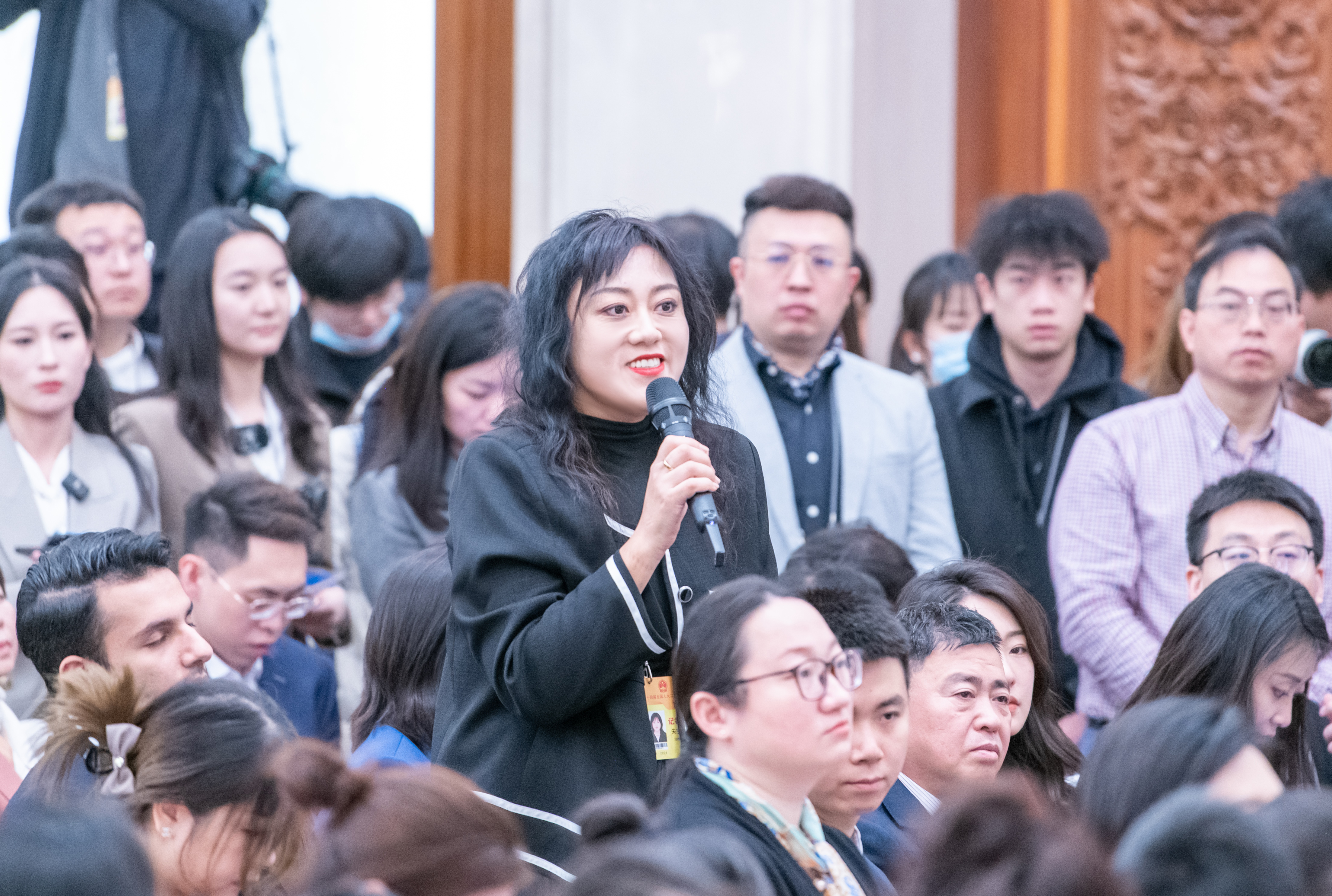 3月4日,十四屆全國人大二次會議在北京人民大會堂舉行新聞發(fā)布會,大會發(fā)言人婁勤儉就大會議程和人大工作相關問題回答中外記者的提問。圖為本報記者提問。 本報記者 王建軍 攝