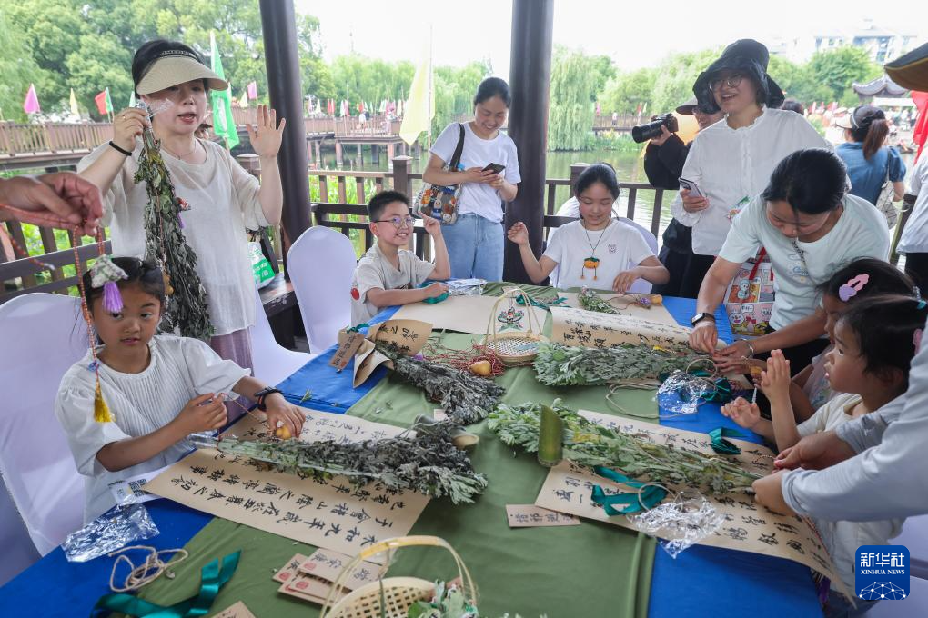 當(dāng)日,浙江省湖州市吳興區(qū)東林鎮(zhèn)舉辦“慶端午 劃菱桶”水鄉(xiāng)端午趣味民俗活動,來自東林鎮(zhèn)各村的村民們在泉益村參加了水鄉(xiāng)劃菱桶比賽、荷塘釣小龍蝦、做艾草花束、包粽子等端午趣味民俗活動,在初夏時節(jié)呈現(xiàn)江南水鄉(xiāng)特有的迎端午氣氛。