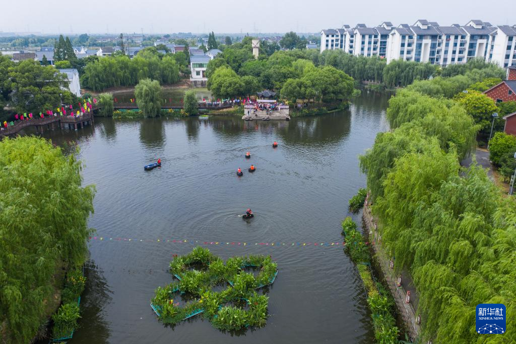 當(dāng)日,浙江省湖州市吳興區(qū)東林鎮(zhèn)舉辦“慶端午 劃菱桶”水鄉(xiāng)端午趣味民俗活動,來自東林鎮(zhèn)各村的村民們在泉益村參加了水鄉(xiāng)劃菱桶比賽、荷塘釣小龍蝦、做艾草花束、包粽子等端午趣味民俗活動,在初夏時節(jié)呈現(xiàn)江南水鄉(xiāng)特有的迎端午氣氛。
