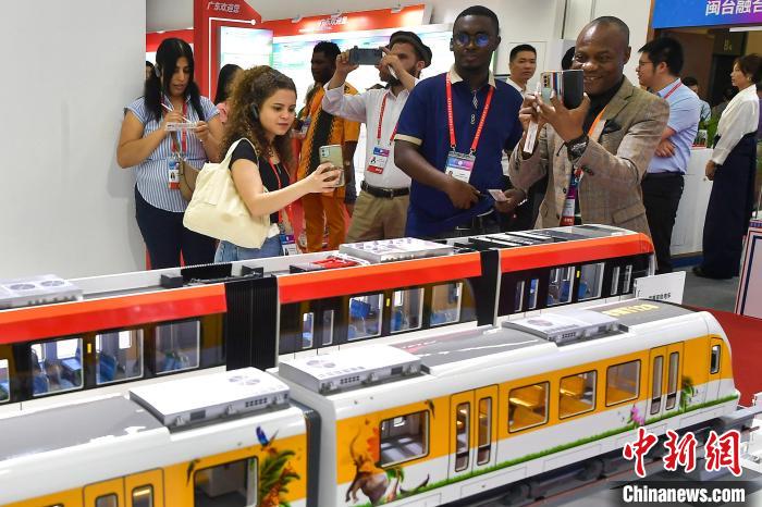 6月18日,第二十二屆中國·海峽創(chuàng)新項(xiàng)目成果交易會(簡稱“海創(chuàng)會”)在福建福州開幕。圖為參觀者在中國中車展館內(nèi)參觀?!≈行律缬浾?張斌 攝