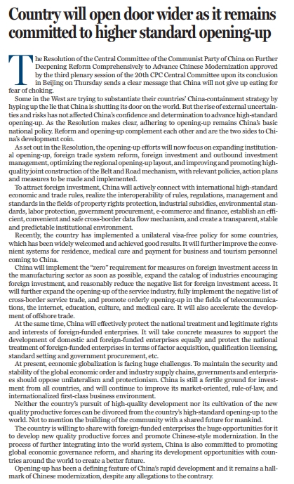 原標(biāo)題:Country will open door wider as it remains committed to higher standard opening-up