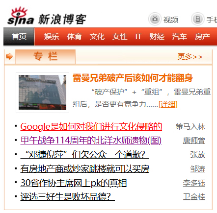 2008年9月18日,新浪博客首頁推薦《Google是如何對我們進(jìn)行文化侵略的》,標(biāo)題為編輯所改。