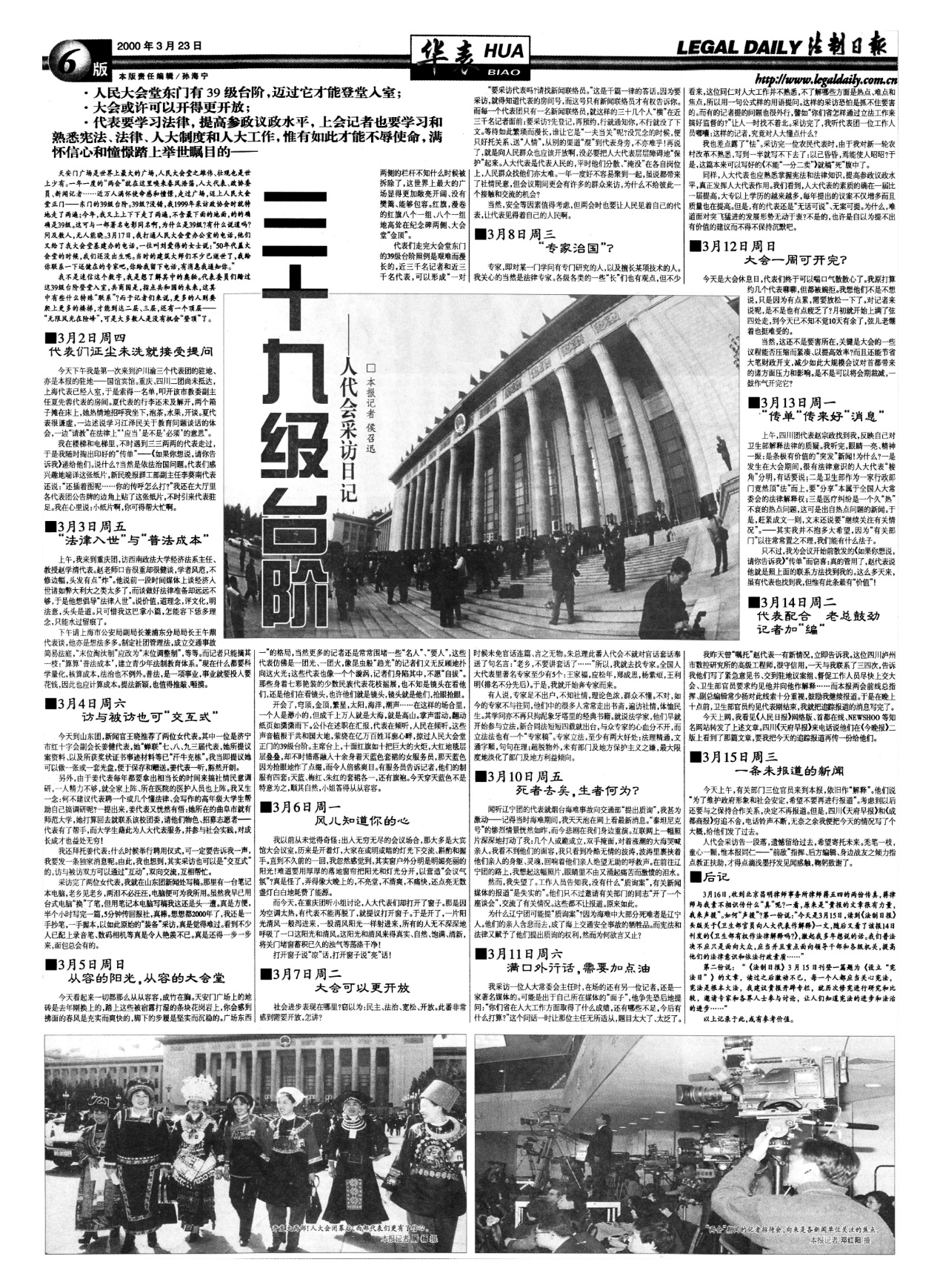 2000年3月23日,《法制日報(bào)》刊發(fā)《三十九級臺階——人代會(huì)采訪日記》。