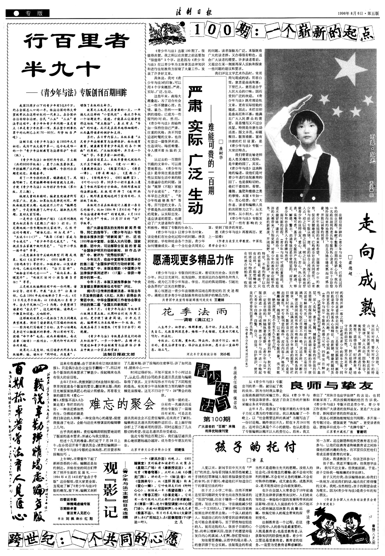 1996年8月6日,“青少年與法”第100期專版。