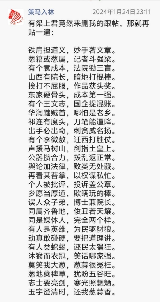 以上三帖,分別為天津8·12濱海新區(qū)爆炸事故“頭七”、山東平度平邑發(fā)生傷民案件、聲援鐵肩擔(dān)道義記者等所發(fā)。多年來,一些案事件頻頻發(fā)生,源于當事地方或部門瀆職不作為或濫權(quán)亂作為,造成嚴重后果,令人觸目驚心。正氣感召,責(zé)無旁貸,匕首投槍,敢于斗爭。