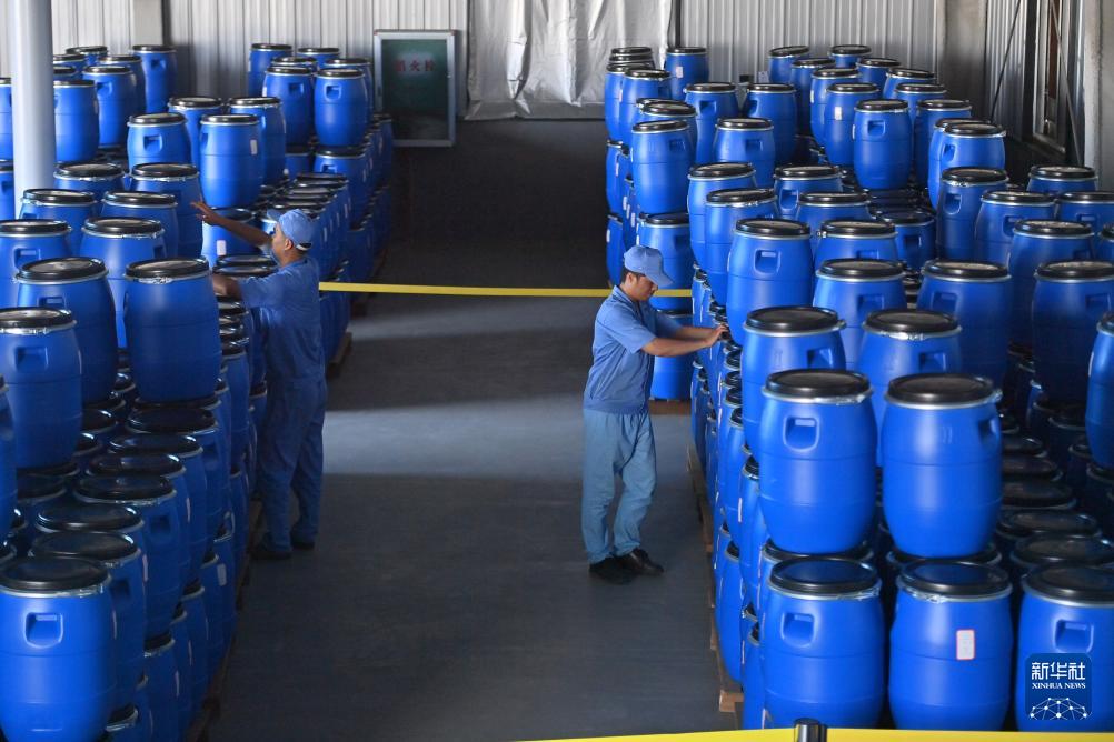 在廣西仙草堂制藥有限責(zé)任公司,工人在搬運青蒿素(8月27日攝)。