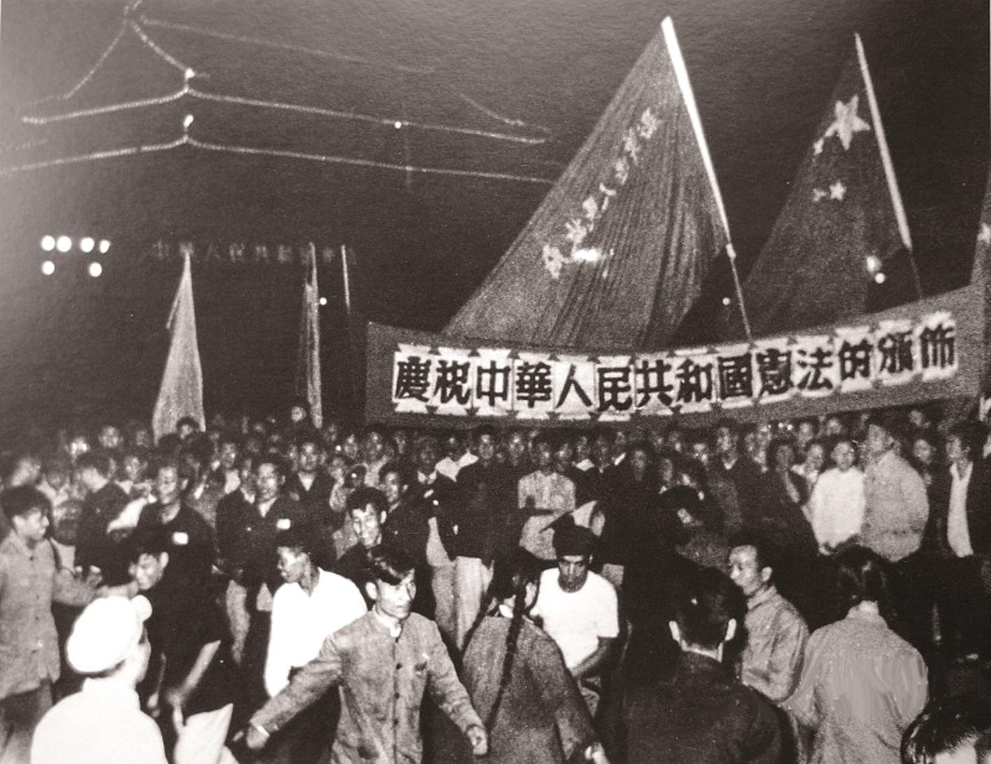 1954年9月21日,首都群眾慶祝《中華人民共和國(guó)憲法》頒布。 新華社發(fā)