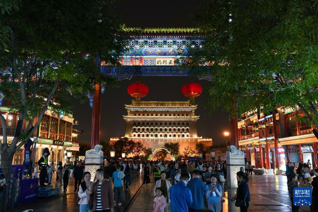 游客在前門大街和正陽(yáng)門箭樓前參觀游覽(9月26日攝)。