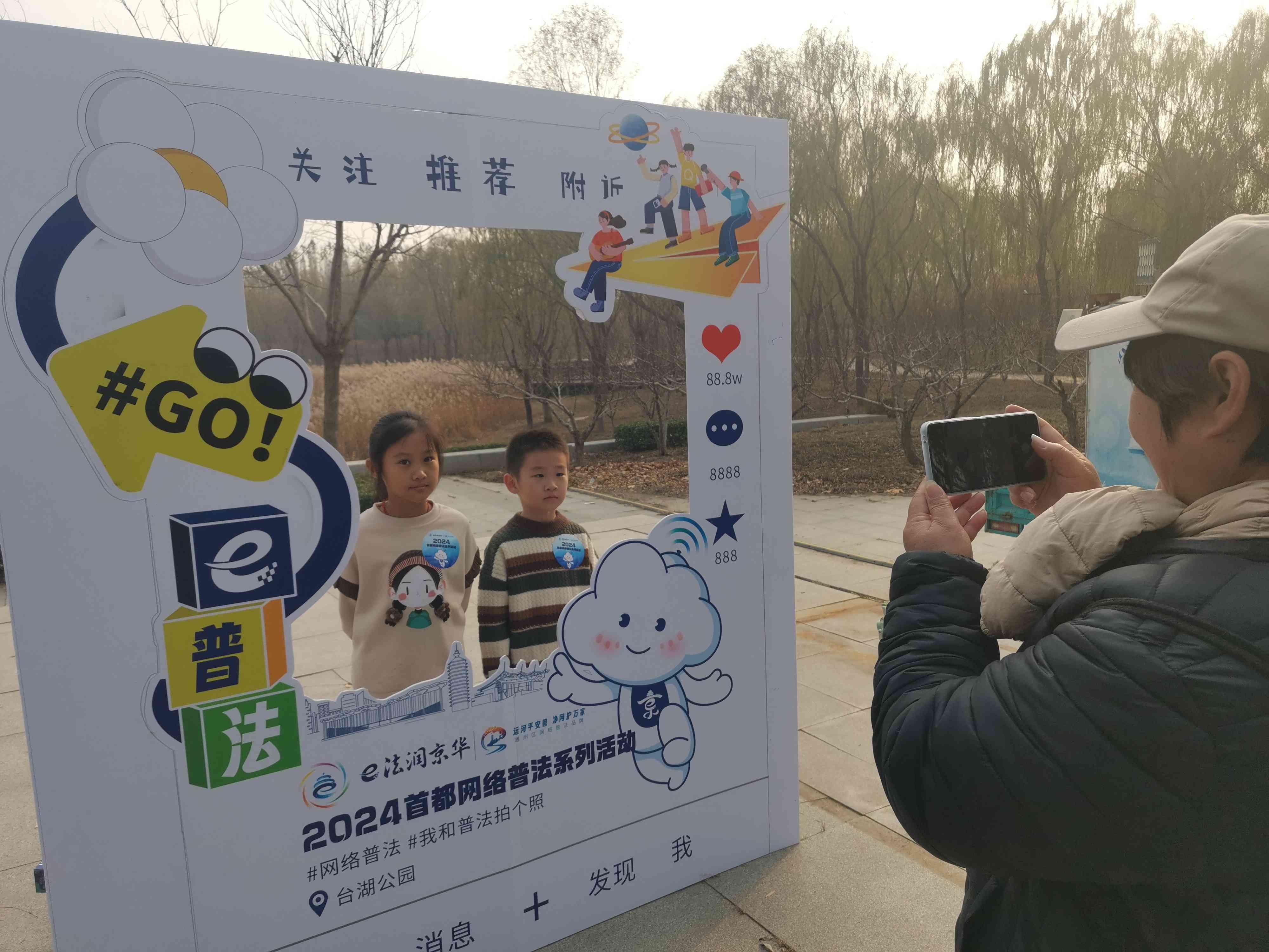 猜謎語、繪圖畫、拼拼圖、玩游戲……11月9日下午,北京市通州區(qū)臺湖公園內(nèi)人聲鼎沸、熱鬧非凡,由北京市委網(wǎng)信辦主辦,通州區(qū)委網(wǎng)信辦承辦,通州區(qū)人民法院、通州區(qū)人民檢察院、通州區(qū)教委以及臺湖鎮(zhèn)人民政府協(xié)辦的“e法潤京華·運河平安獸 護網(wǎng)凈萬家”網(wǎng)絡(luò)普法游園會正如火如荼地進行。記者在現(xiàn)場看到,人們駐足觀看普法短劇并爭相和劇中的小主人公合影、在普法展板前聽檢察官以案講法、在網(wǎng)絡(luò)普法像框墻前打卡留念,在手繪布上畫下對網(wǎng)絡(luò)安全和文明上網(wǎng)的理解與期盼。而現(xiàn)場設(shè)置的網(wǎng)絡(luò)普法猜猜猜、普法拼圖大挑戰(zhàn)、網(wǎng)絡(luò)普法飛行棋等闖關(guān)游戲更是引起眾多小朋友的興趣和熱情,每個游戲區(qū)前都排起了長隊,在歡聲笑語中,針對未成年人的網(wǎng)絡(luò)保護知識也在孩子們心中扎根發(fā)芽。
