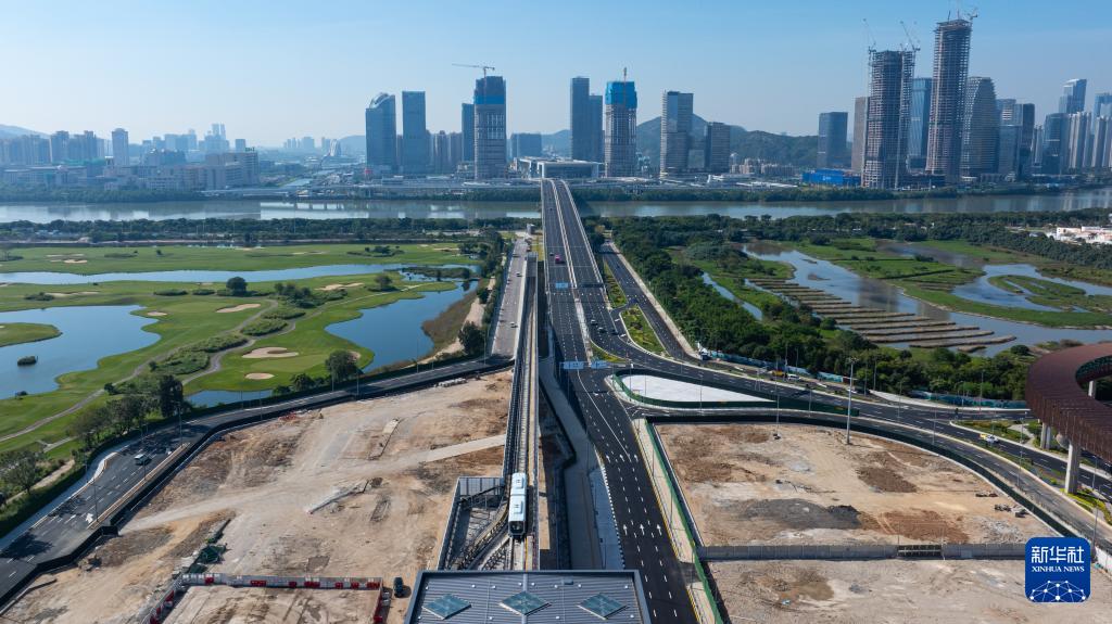 ??12月2日,澳門輕軌從蓮花站開往橫琴站(無人機照片)。新華社發(fā)(張金加攝)