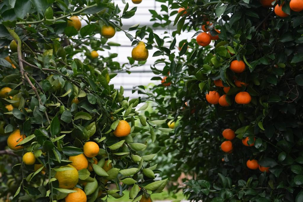 圖為中國(guó)柑橘博覽園大棚內(nèi)的橘樹(shù)。新華社記者周佳誼 攝