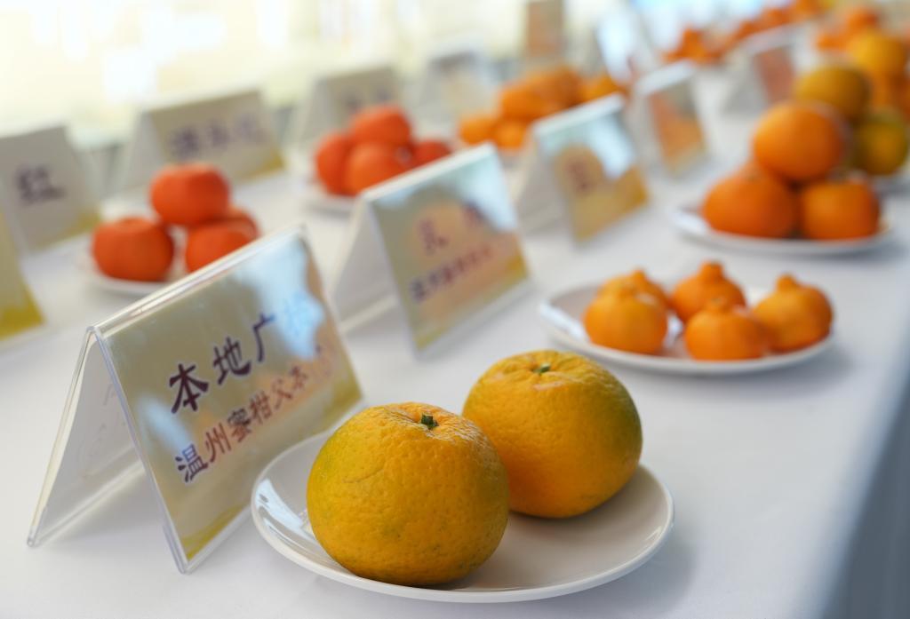 中國(guó)黃巖蜜橘種源研究中心內(nèi),各品種柑橘集中展示。新華社記者周佳誼 攝