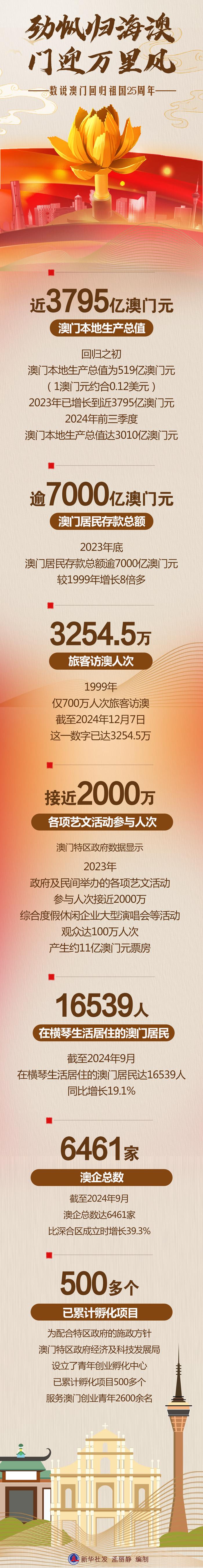 回歸祖國25年來,在“一國兩制”方針指引下,在中央政府和祖國內地的大力支持下,澳門實現(xiàn)向現(xiàn)代化國際都市的華麗轉身。澳門特別行政區(qū)政府與社會各界攜手并進,積極探索適合自身的發(fā)展路徑,在經濟、民生等領域取得顯著成就。 新華社發(fā) 孟麗靜 編制