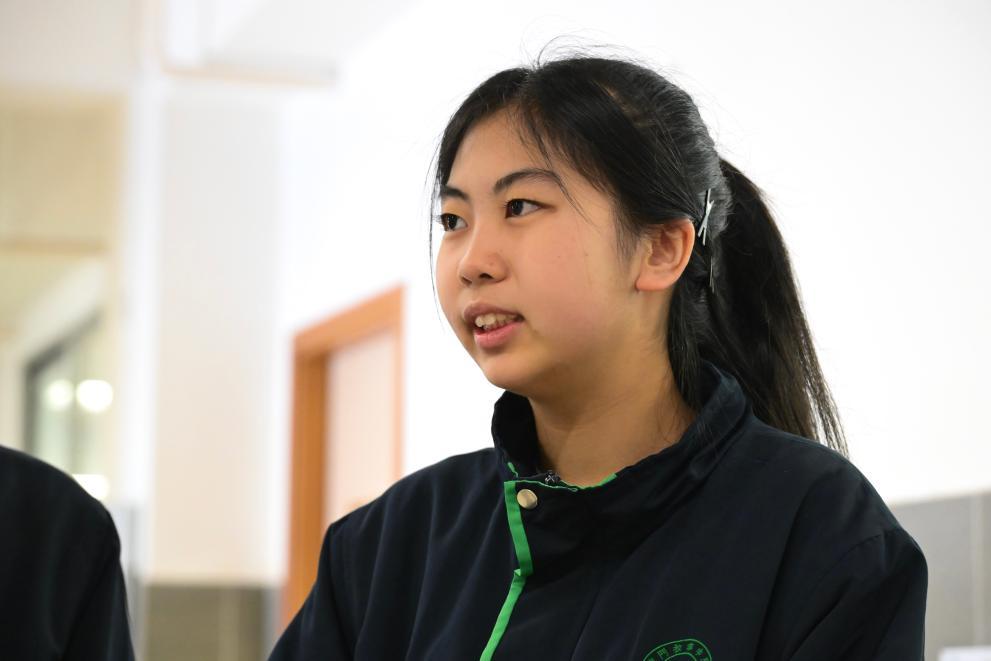12月17日,澳門教業(yè)中學(xué)高一學(xué)生蔣麗萍在接受采訪。新華社記者 朱煒 攝