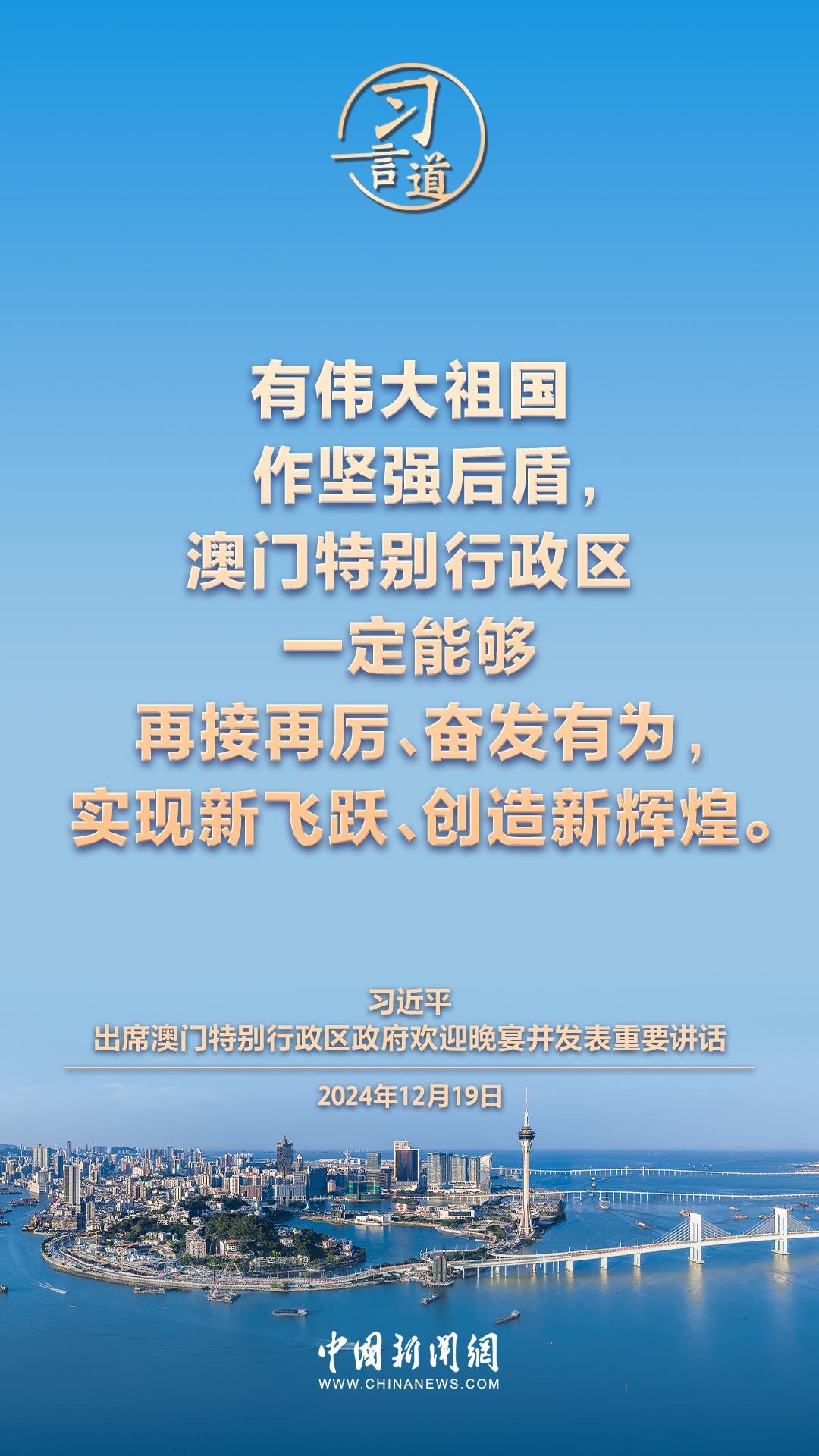 國家主席習(xí)近平19日晚出席澳門特別行政區(qū)政府歡迎晚宴并發(fā)表重要講話。習(xí)近平指出——