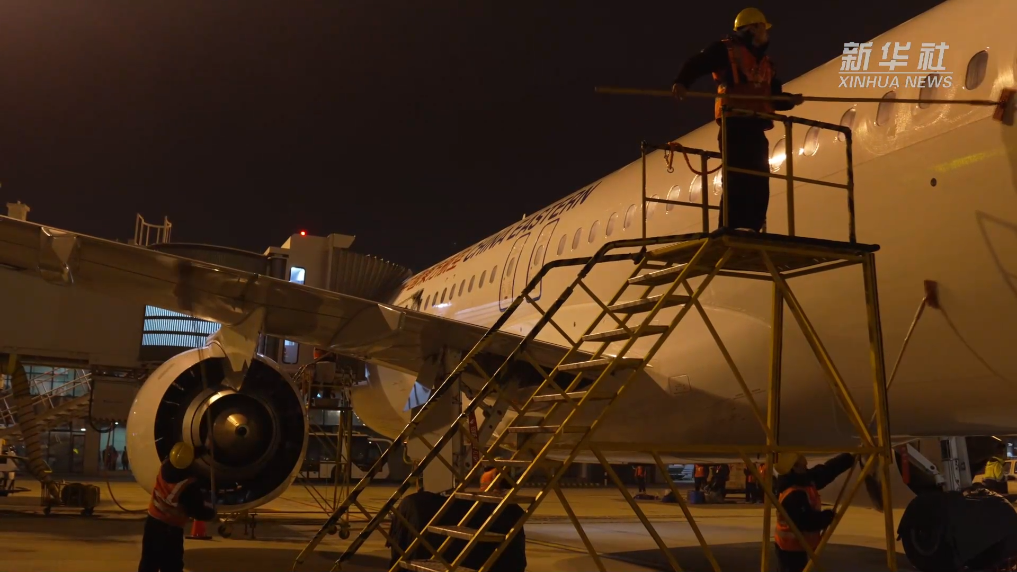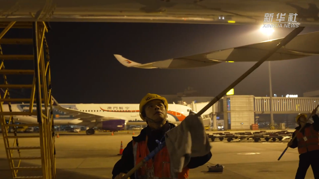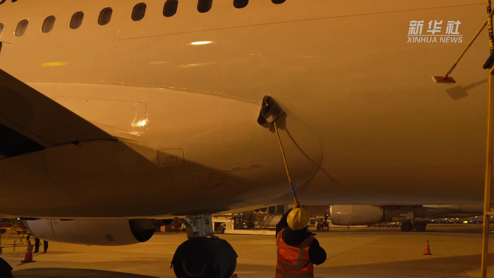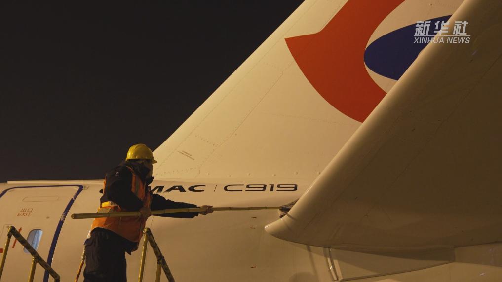 新春走基層丨給C919洗個澡:閃亮亮的C919來接駕
