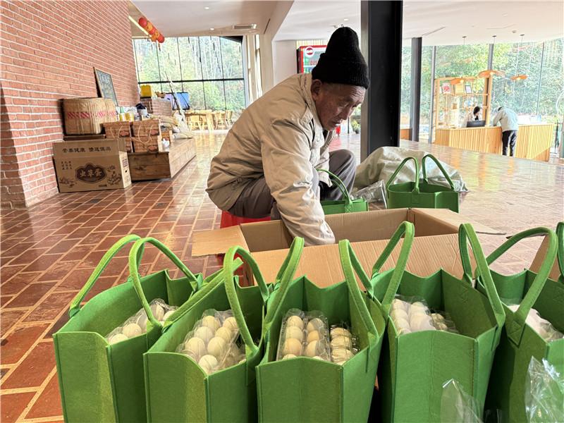 2023年,海洋村嘗試“農(nóng)業(yè)+民宿”,將村里的養(yǎng)殖的土豬、土雞制作成半成品,包裝成禮盒售賣,“去年剛開始只銷售了二十多萬元。今年的銷售情況很好,從2024年底到現(xiàn)在,已經(jīng)售賣了六十多萬元?!?馮源淵笑容滿滿,“進入臘月后,已經(jīng)宰殺了二十多頭黑豬,還有致電想要預(yù)定的都沒有了?!?/p>