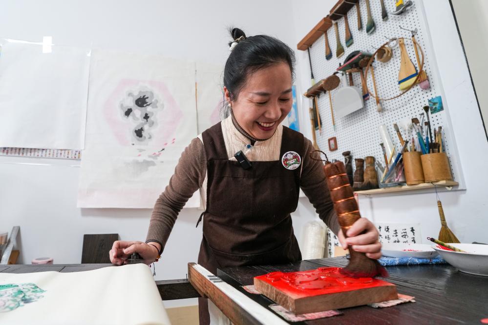 去年12月,春節(jié)申遺成功,桃花塢木版年畫亦包含其中。這讓喬蘭蓉等傳承人感到振奮不已?!敖陙?,隨著國家加大對優(yōu)秀文化的保護和傳承力度,一批批傳統(tǒng)非遺項目正以嶄新的姿態(tài)回歸百姓生活?!眴烫m蓉感慨說。
