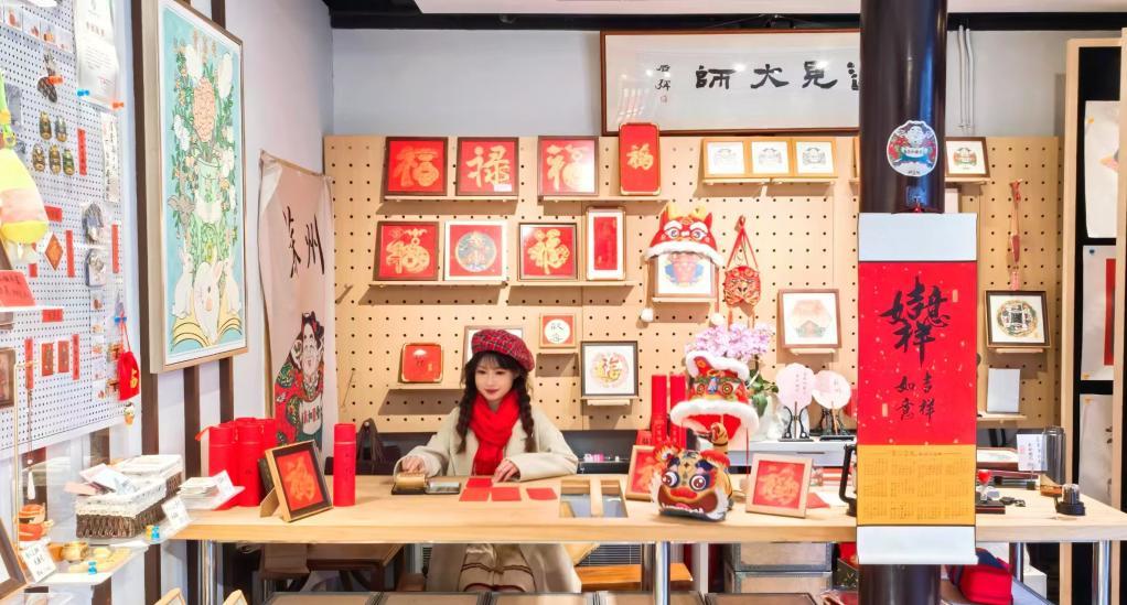 如今,蘇州在春節(jié)期間都會舉辦“年畫重回春節(jié),過別樣姑蘇年”等相關(guān)非遺活動。蘇州市文化廣電和旅游局牽頭完成了桃花塢木版年畫相關(guān)作品的數(shù)據(jù)采集,各個平臺上線的桃花塢木版年畫數(shù)字作品,備受市場青睞。據(jù)統(tǒng)計,2024年相關(guān)產(chǎn)品銷售額同比增長20%以上。