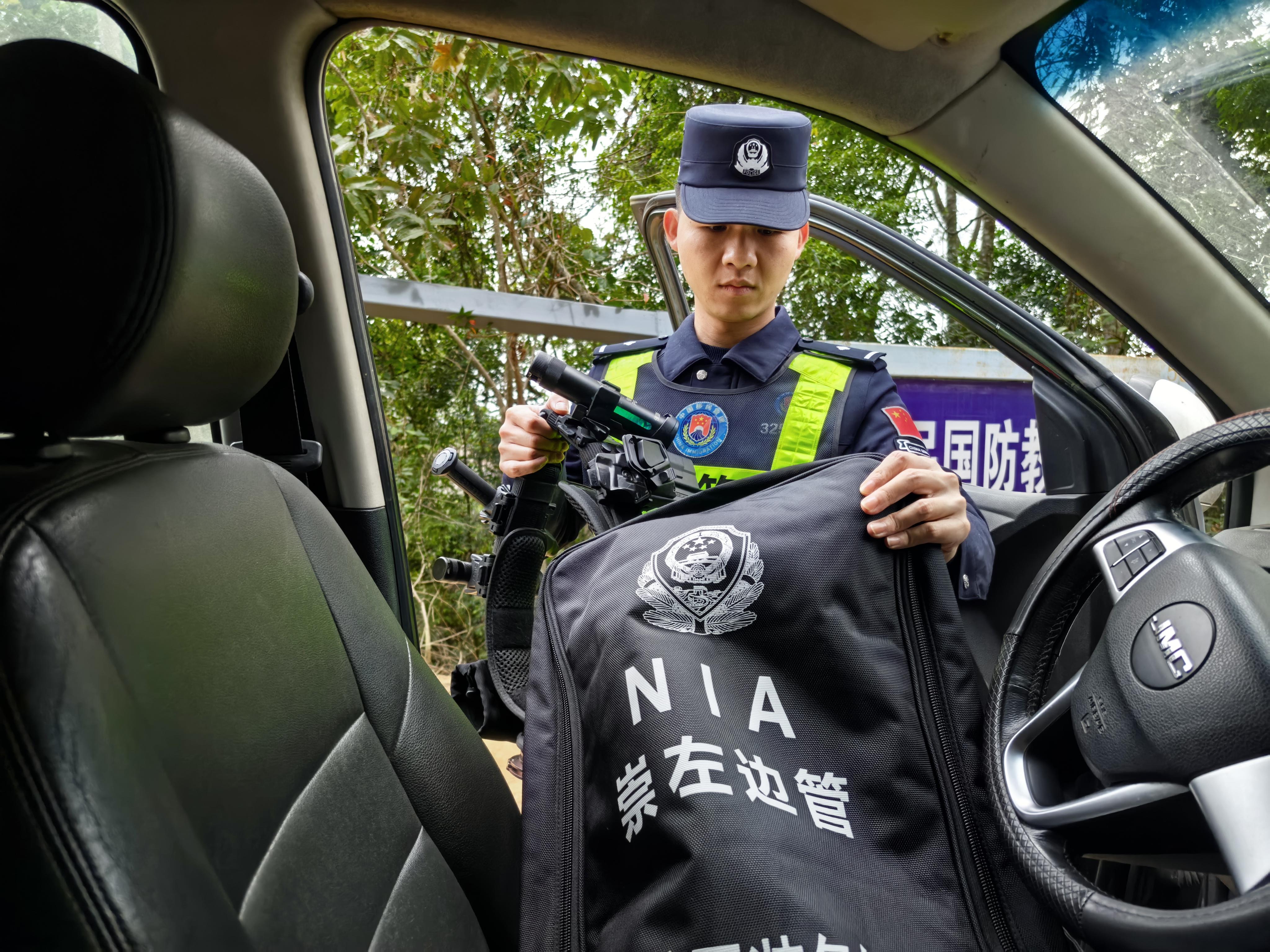 傅彬整理好裝備,準(zhǔn)備開展邊境巡邏。(陳威攝)