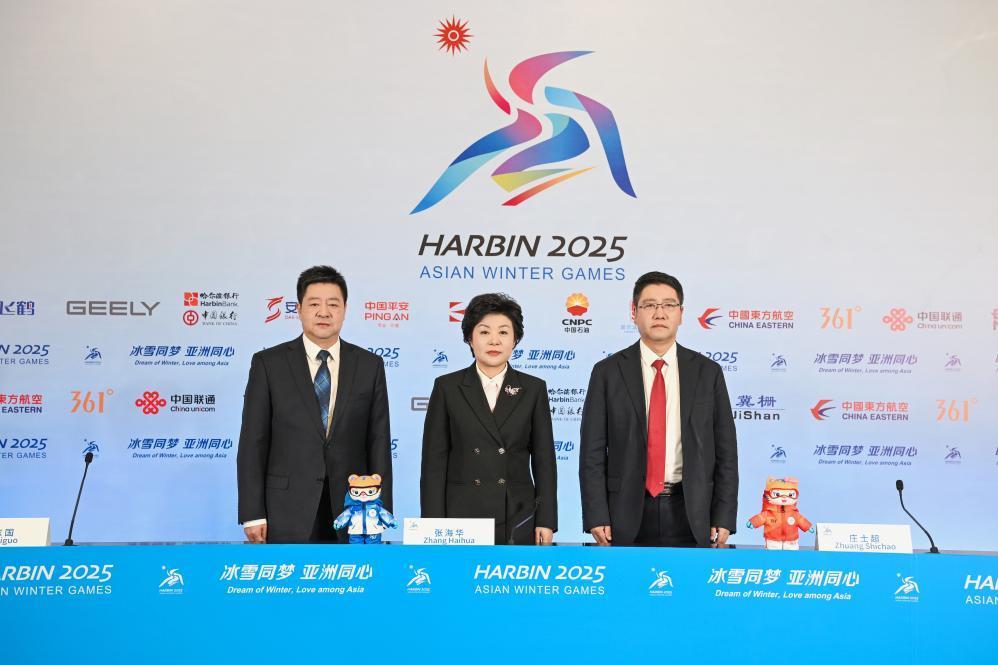 哈爾濱亞冬會(huì)主新聞發(fā)言人柏志國、張海華、莊士超(從左至右)正式亮相。