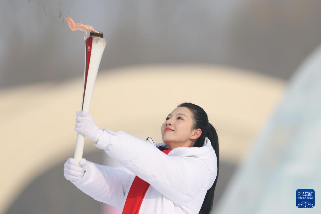 1月20日,采火使者展示圣火。新華社記者 張濤 攝