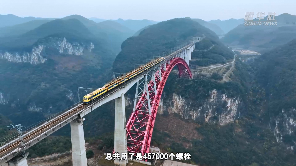 大橋全長(zhǎng)810米,主跨352米,軌頂至水面高差約320米,該橋跨度為目前世界上單線鐵路同類橋型之最。