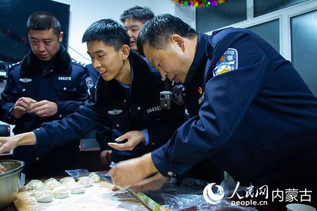 值班民警一起包餃子。人民網(wǎng)記者 李睿攝