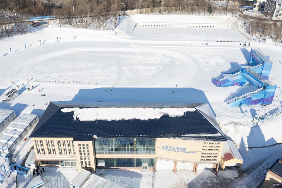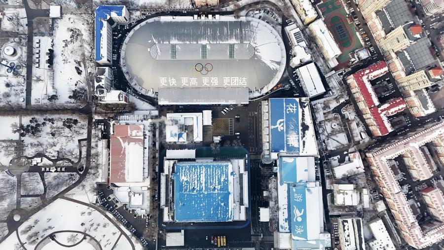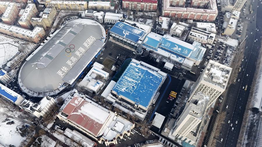 這是1月27日拍攝的黑龍江省冰上訓(xùn)練中心綜合館(短道速滑、花樣滑冰比賽場(chǎng)館)(無(wú)人機(jī)照片)。新華社記者 王建威 攝