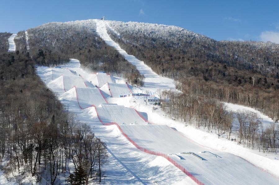 這是1月16日拍攝的位于亞布力滑雪場(chǎng)內(nèi)的第九屆亞冬會(huì)坡面障礙技巧場(chǎng)地和大跳臺(tái)場(chǎng)地(無(wú)人機(jī)照片)。新華社記者 謝劍飛 攝