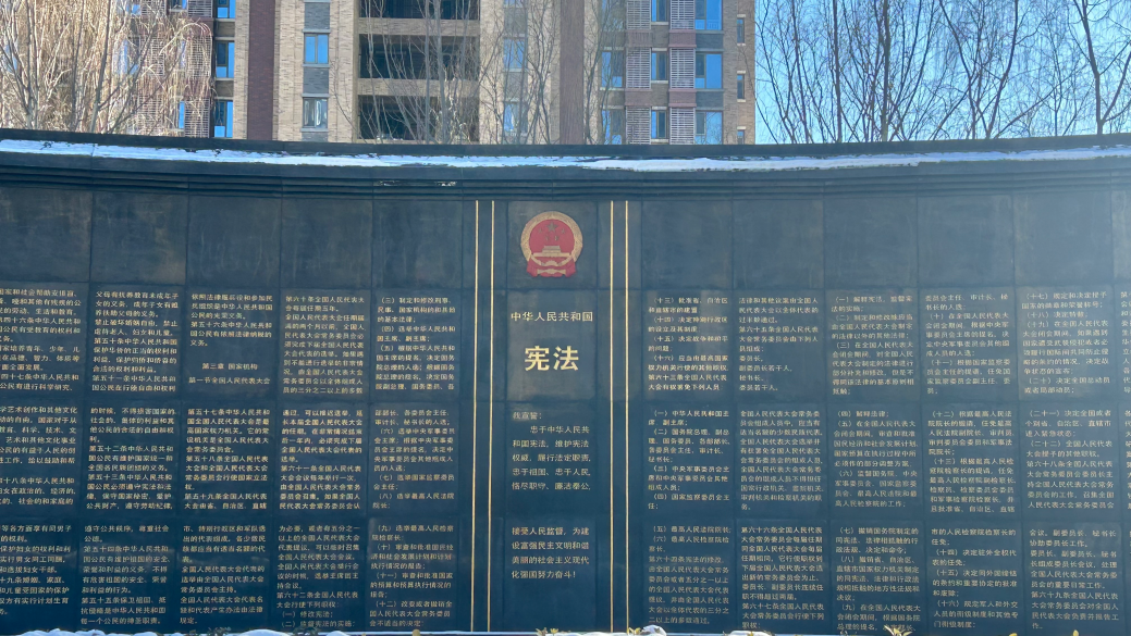 1月28日,農(nóng)歷臘月廿九,大雪過后的滄州憲法主題公園銀裝素裹,靜謐而莊嚴(yán)。記者走進(jìn)公園發(fā)現(xiàn),紅燈籠、法治標(biāo)語、憲法宣傳展板交相輝映,濃濃的新春氛圍撲面而來。