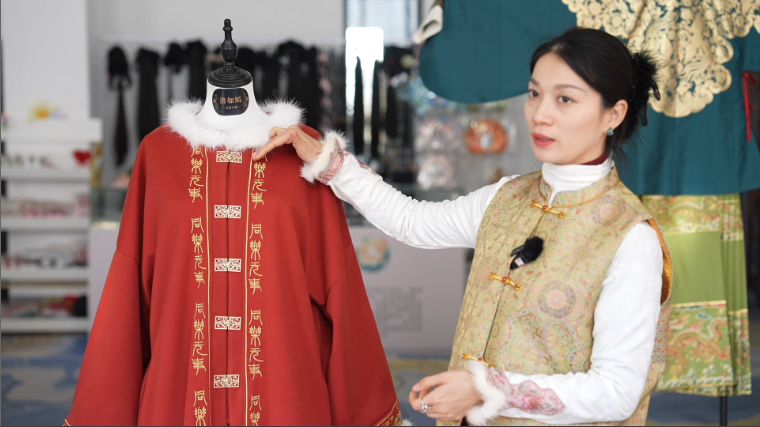曹縣洛如嫣原創(chuàng)漢服負責(zé)人展示蛇年新款拜年服