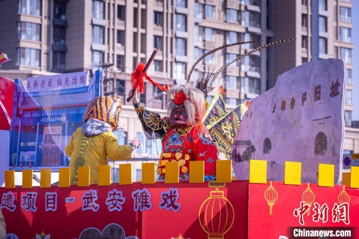 圖為社火巡游現(xiàn)場(chǎng)的武安儺戲表演。 李樹(shù)鋒 攝