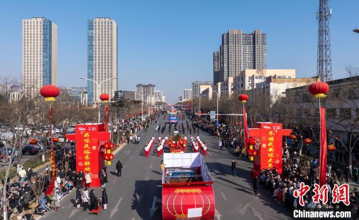 圖為航拍社火巡游現(xiàn)場(chǎng)。 李樹(shù)鋒 攝
