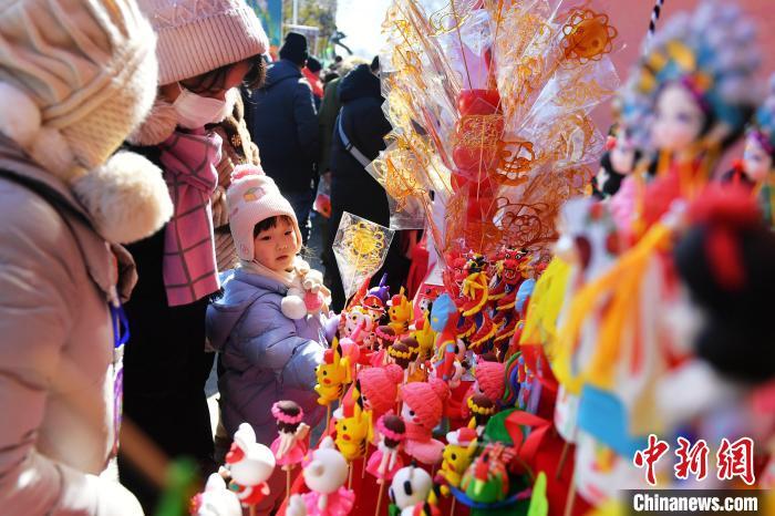 2月9日,民眾在攤位前了解手造作品。當(dāng)日,位于青島市市北區(qū)的2025年青島蘿卜·元宵·糖球會(huì)海云庵會(huì)場(chǎng)開(kāi)街,豐富多彩的迎接元宵節(jié)活動(dòng)吸引大量民眾參與。蘿卜·元宵·糖球會(huì)擁有百年歷史,是當(dāng)?shù)刂匾拿袼谆顒?dòng)之一。王海濱 攝