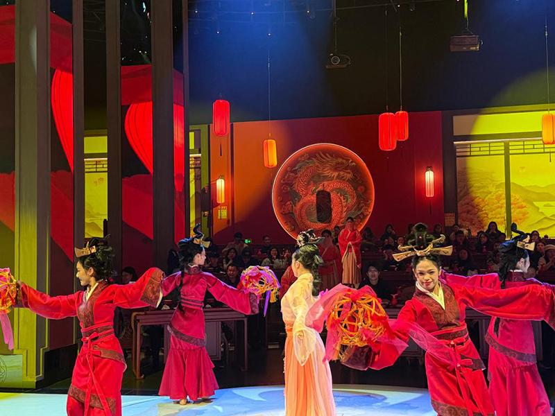 12日晚,位于重慶渝中的互動沉浸式餐廳龍鳳呈祥·禧筵餐廳內,市民游客邊看演出邊品嘗特色美食。新華社記者 李曉婷 攝